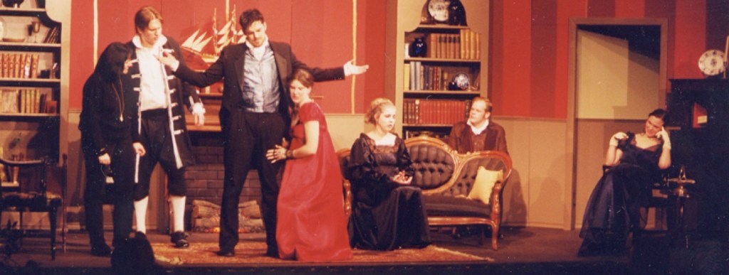 MARK: “Warmward”? Temperature-wise, Gordon was the same as Buffalo in 1985. But the climate toward the arts needed to thaw a bit—and perhaps had just begun to, thanks to Dick Gross, the president who hired our man, and even more to Jud and Jan Carlberg—Jud who was dean of faculty, and who became prez in ’92; it was Jud who said Yes to a Department of Theatre (surely thanks to Jan). But when Norm arrived, theatre was still programa non grata and mostly viewed with doubt-&-fear by The Faithful. It appeared as “speech” or “speech and drama” in English programs (see Norm’s Hypernikon picture). And that’s the theatrical winter his new students, his discontents, were dressed for in 1985—not daring to hope for a glorious summer through this son of New York…