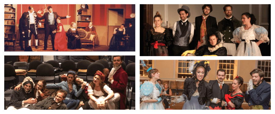 The five machinate with increasing agitation under the anxious eye of a sham serving man—who is really a detective in a clumsy disguise (doubles Captain White). When, at the end of Act One, the Captain is murdered, the serving man reveals himself to be Massachusetts Senator Daniel Webster (replete with whiskey). Webster appoints an audience member as deputy; then he and the audience reconstruct the suspects’ movements and assess their motives. The final outcome of the play (there are five possible endings) can be determined by the audience’s vote.